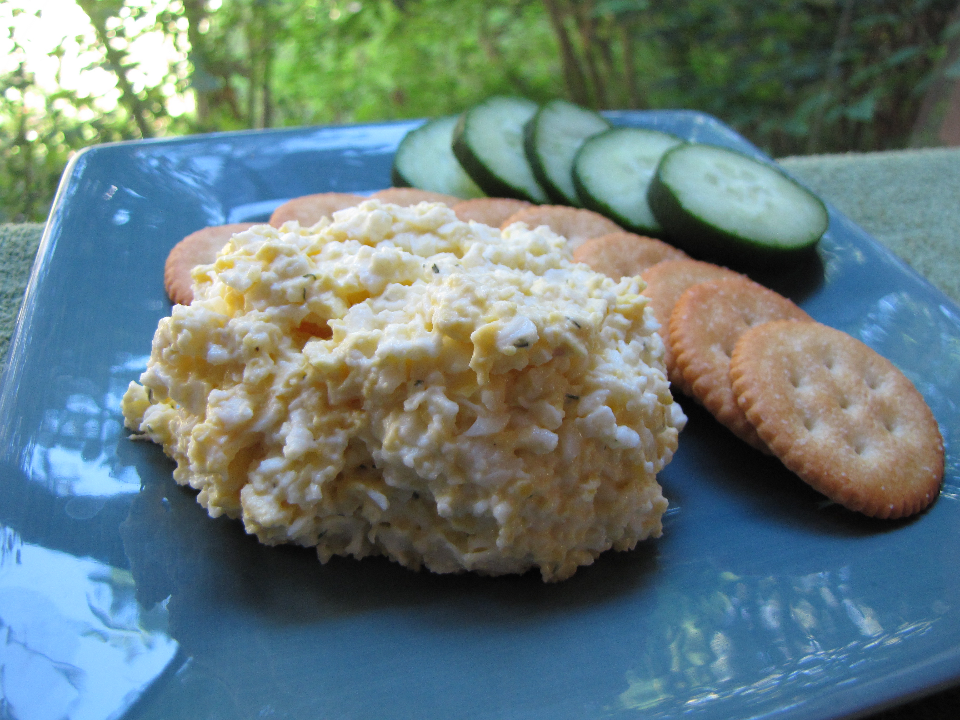 Put eggs in a bowl and mash them up with the back of a fork. Add mayo and dill and mix everything together. Salt and pepper to taste. Put in a sandwich with crisp lettuce and cucumber or place a scoop on top of your salad.