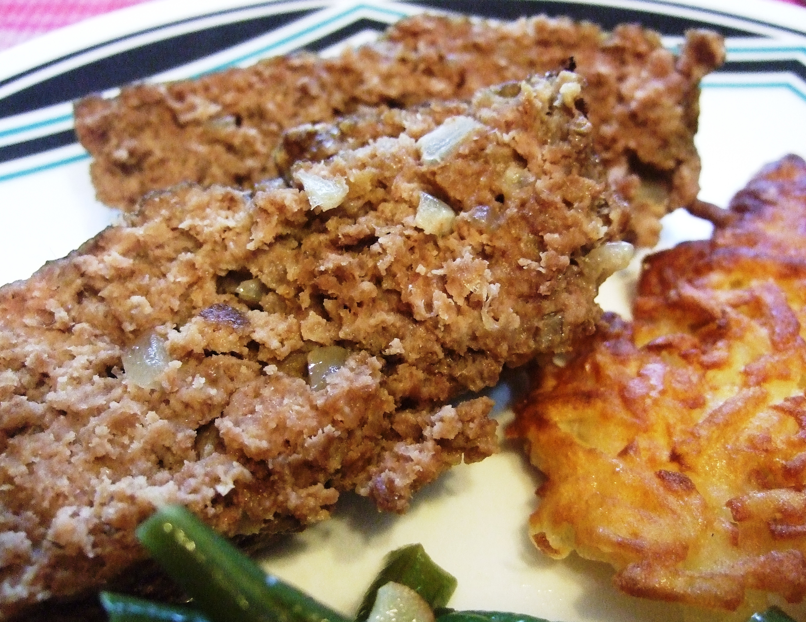 Mix all ingredients in a bowl; get your hands in there! Spray a loaf pan with nonstick cooking spray; place mixture in pan. Bake at 350 degrees Fahrenheit for 45 minutes to 1 hour or until internal temperature reaches 170 degrees Fahrenheit. If you choose to make these in a muffin tin, they will cook quicker so be sure to use a thermometer.