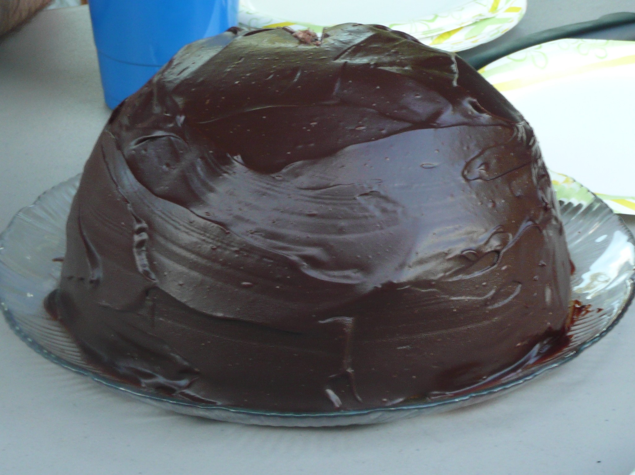 Dump the chips and butter into a food processor. Bring the cream and sugar to a boil. Don't burn it! Dump cream mixture into chips, turn processor on. Once it's mixed, cover and stick in fridge until the mix is the right texture for frosting. If you're in a hurry, put some ice cubes in a big bowl, and the chocolate mix in a smaller bowl. Place the bowl with chocolate into the larger bowl on top of the icecubes (No! Don't put the cubes into the chocolate mix!) Stir and the mixture will thicken as it cools. Perfect and yummy. Don't work it too much or it loses its shine-- though it's always delicious. I imagine a blender will work-- you might have to add more cream to supply more liquid. I haven't tried. Add vanilla or, for a more grown-up taste, substitute a tablespoon of Kalua or Grand Marnier. For truffles, let the mix cool longer, form into balls and sprinkle with confectioner's sugar.