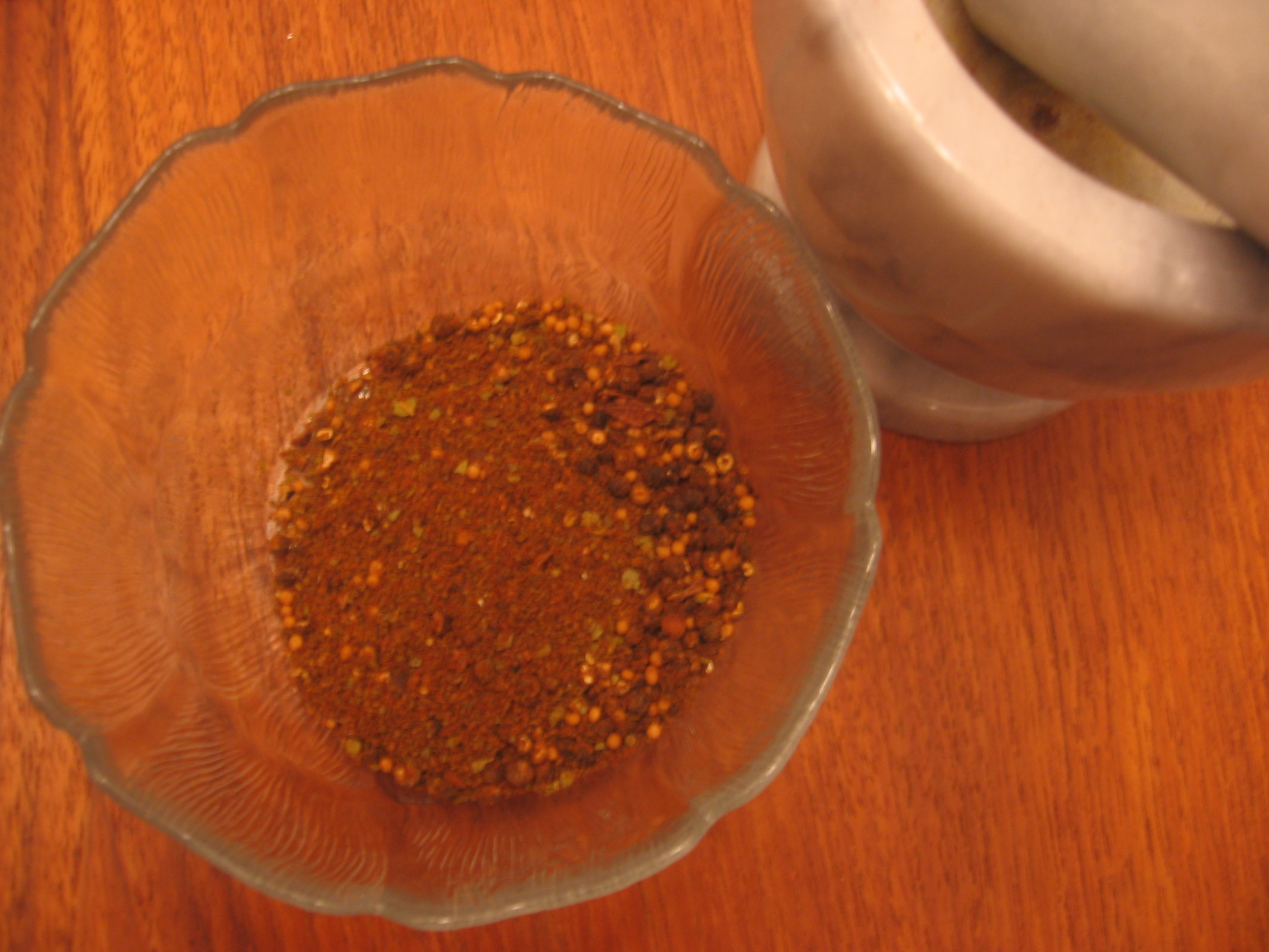 Place ingredients in a spice grinder or small food processor-grind well. Store in a small glass.